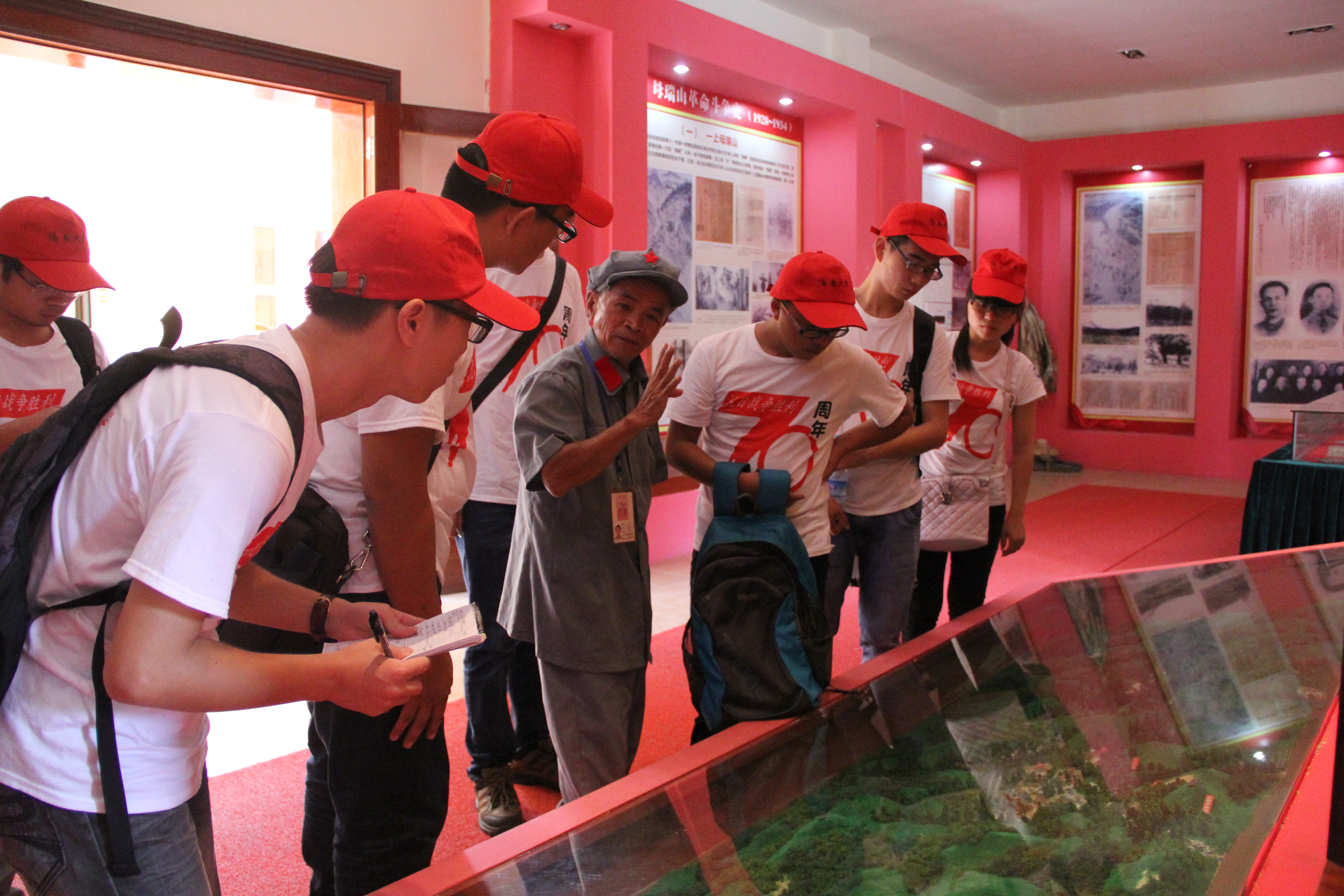 “母瑞山革命根据地纪念园”建在国营中瑞农场原红军操场的一座小山岗上,占地9亩。3.5米高的王文明主席、冯白驹将军铜像耸立在纪念园中央;两层楼的展览馆陈列了海南在新民主主义革命时期,以母瑞山革命根据地为中心的革命斗争史料。寻访团一行人在对纪念园做了认真调研记录后,跟随着王学广老先生来到了纪念园讲解室。王老先生是纪念园的园长,他身穿朴素的红军装,极为生动地为寻访团讲述了母瑞山革命历史。当讲述到先烈英雄的艰苦奋斗时,在场所有同学为之震撼,母瑞山保存了两次革命的火种,为海南革命燃起希望。在讲解结束之际,王老先生为一行人总结了母瑞山革命精神,可概括为32个字:崇高理想,坚定信念;不怕牺牲,勇于献身;相信群众,依靠群众;自力更生,艰苦奋斗。王老先生最后提到:“母瑞山是革命的山,英雄的山,母瑞山革命之火代代相传!母瑞山革命精神,光辉千秋!”