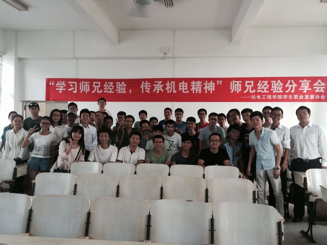 10月31日下午,由必赢626net入口首页学生职业发展协会承办的“学习师兄经验,传承机电精神”经验交流会在3号教学楼406教室顺利举行。受邀参加此次活动的有2011级王宇飞(考取北京理工大学研究生)、张小峥(4808军械修理厂技术工程师)、覃汉柱(蒂森电梯有限公司项目工程师),以及近60名报名参加交流会的各年级同学。交流会由我院学生职业发展协会牧雅路主持。