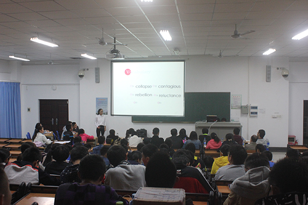 比赛由主持人林晓苗的一曲《MY LOVE》开场,磁性的歌声获得了观众热烈的掌声。本次比赛分为三个环节:第一环节为“单词短语抢答”,选手们焦急兴奋的跃跃欲试经多次犯规后才冷静下来,单词短语以四级考试词汇重点为题,意在考察选手们对于四级词汇的掌握程度;第二环节为“电影翻译”,依据电影对话片段进行翻译与表演。这个项目难度较大,选手表现差距悬殊,不过更多的选手均以精彩的表现博得了阵阵喝彩;第三环节为“话题阐述”,以“what is the role of mobile phone in our life”为话题进行2—3分钟的主题演讲,这个项目要求选手不仅要有很好的见解与表达能力,对英语口语也有着很高的要求。