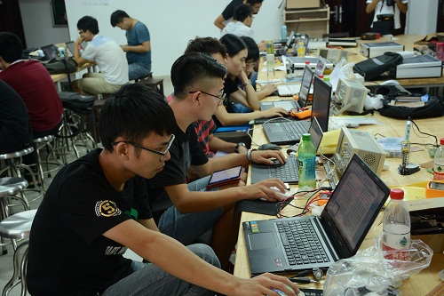我们学院共有30多只代表队伍参加了本次竞赛,学院比赛赛场设置在理科研发大楼1715实验室。每支队伍都在认真分析赛题,专心制作自己的作品,团队间配合默契。10月25日下午4点,经过4天3夜的艰苦奋战,本次比赛正式落下了帷幕。赛区评委老师对学生作品进行封箱,随后进行初步测试。我们学院评委老师根据初测成绩推选出10组优秀队伍参加本次大赛评奖评优。