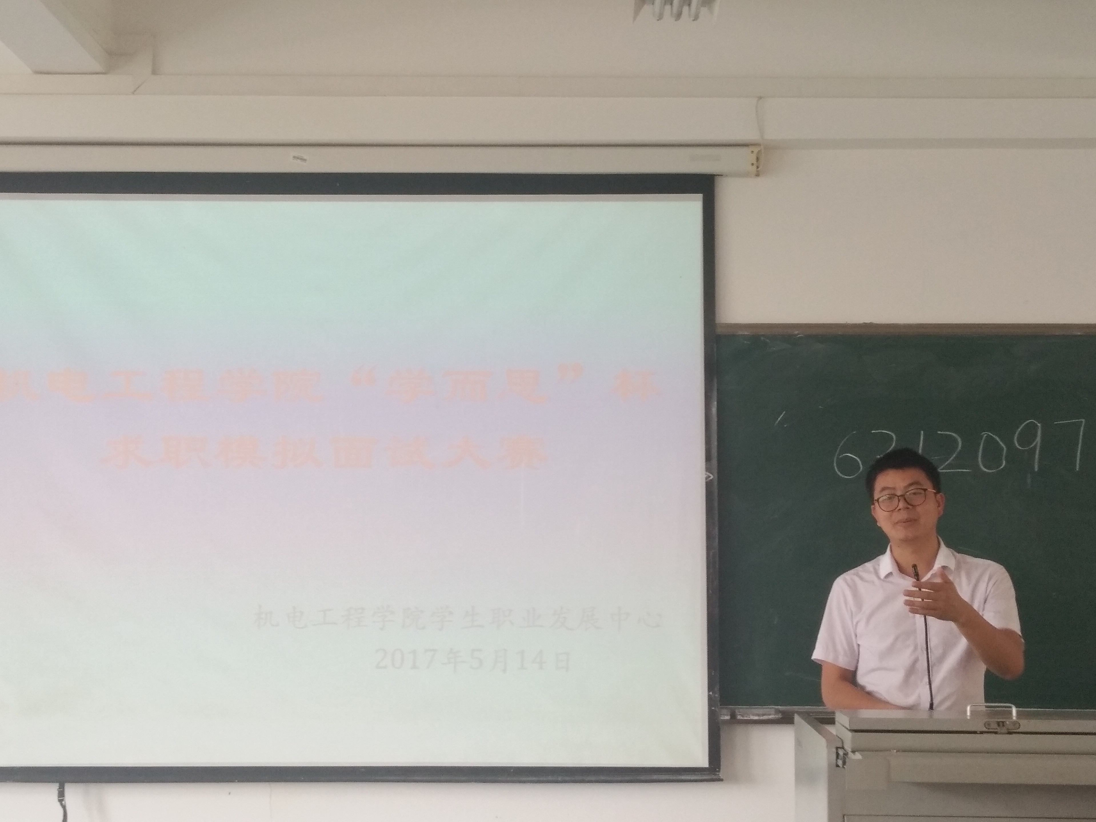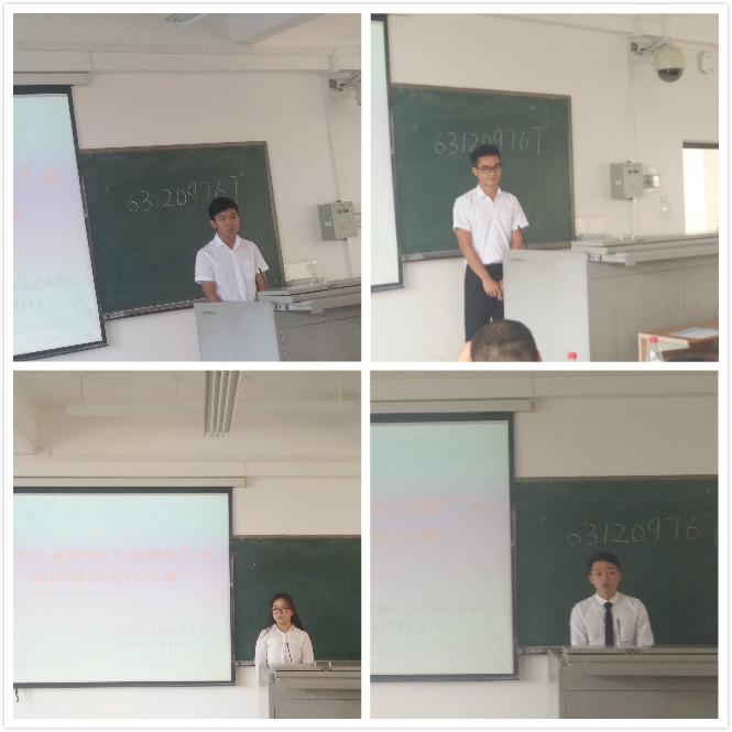 2017年05月14日星期日必赢626net入口首页4教317成功举办“学而思”杯求职模拟面试大赛初赛。担任初赛评委的有就业指导中心张海韵,土木建筑工程学院就业辅导员詹达夫,学院辅导员崔建兵,李青,傅悦五位老师,机电职业发展中心的成员和参赛选手参加比赛。