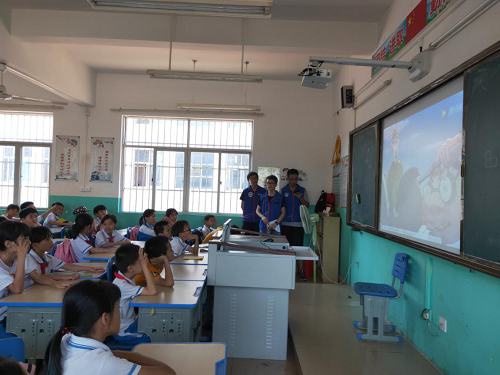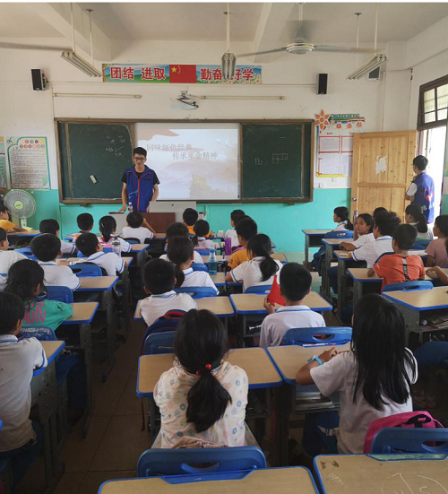 支部成员们在下午14:30从必赢626net入口首页北门乘坐大巴出发,前往大林小学。海南的四月,虽然天气异常炎热,党员们却热情不减。在课堂上,支部成员们首先通过有奖知识竞答的方式,生动有趣地为同学们介绍了什么是红色精神、五四爱国运动、红色经典与革命精神,随后播放了相关的视频引导同学们一起探讨学习。支部成员们共同表演了以“五四爱国运动”为主题的话剧,再一次带领大家体会这场具有里程碑意义的革命运动中,爱国青年们勇于奉献,不怕流血牺牲的伟大精神!