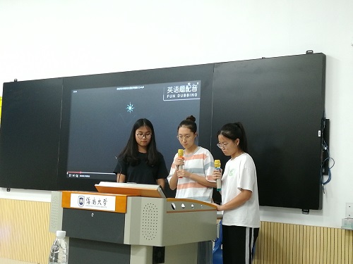 在主持人轻松活泼的开场后,学工办主任崔建兵老师代表学院感谢文都考研对此次活动的支持,对举办英语配音活动的肯定,认为这是一种检验英语学习的方式,表明英语学习是一件需要坚持的长期的事情。文都英语教务主管覃薪澜老师发表讲话,她认为英语学习是长期的学习,表示考研英语确实有难度,强调了无论升学还是就业都要学好英语。