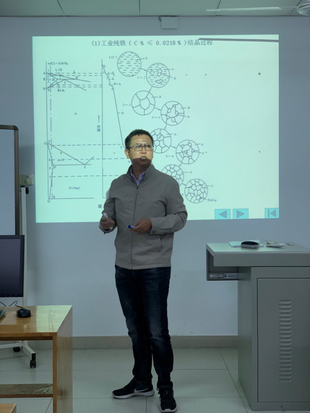 罗洪峰副教授,王涛副教授,袁磊博士分别在研发楼进行工程材料,理论力学,机械制图公开示范课的讲授。罗洪峰老师的课程是围绕铁碳合金的平衡结晶过程进行讲解,详细介绍了结晶过程和产生的原理。王涛老师围绕达朗贝尔原理的应用。王涛老师讲课过程中采用理论联系实际,通过工程案例提升机的习题进行课堂教学,逐层深入分析引入仿人机器人控制原理和飞轮的创新应用,袁磊老师围绕组合体的三视图绘制进行讲授,通俗易懂。在本次公开课讲授过程中,机械系李粤、文伟、郭志忠教授,林茂、陈致水、朱冬云、张先满、王娟、张秀梅副教授,陈芝强实验员,机械系新任教师邢洁洁、吴中野博士一同进行了教学观摩。最后大家进行了教学总结和留影,此次教学公开课活动对于学院基础课的教学质量提高和教师教学交流起到良好的促进作用。