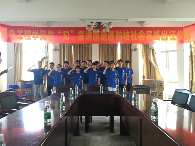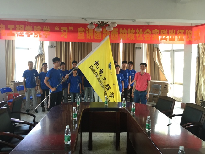 随后,实践队全体队员在队长胡鑫宇的带领下完成宣誓仪式,表达了队员们对此次赴西柏坡进行社会实践调研的决心和信心。最后黄国标副书记为实践队授学院院旗,此次出征仪式圆满结束。