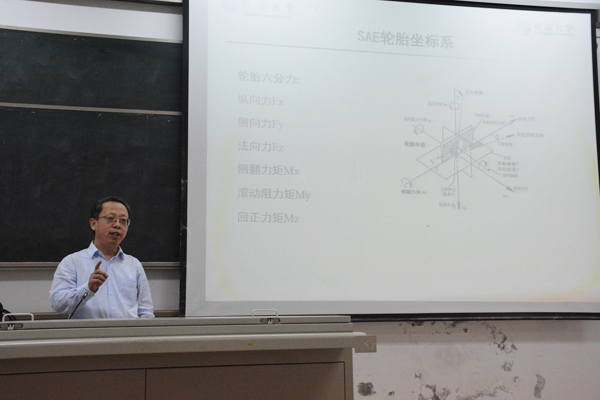 吴教授主讲的课程题目为:汽车先端技术。吴教授从汽车设计理论与方法、汽车开发新技术、汽车新技术现状和汽车新技术展望等四个方面进行了讲解,并结合最新的案例ADAS做了进一步说明。吴教授详细地阐述了ADAS汽车先进驾驶辅助系统,是利用安装在车上的各式各样传感器,在汽车行驶过程中随时来感应周围的环境,收集数据,进行静态、动态物体的辨识、侦测与追踪,并结合导航仪地图数据,进行系统的运算与分析,从而预先让驾驶者察觉到可能发生的危险,有效增加汽车驾驶的舒适性和安全性;增强现实技术如消除视觉盲区、倒车影像和全息影像、导航等;汽车轻量化技术如使用铝合金、镁合金等材料和拓扑优化;无人驾驶汽车研究;车联网技术等。吴教授渊博的学识、严谨的治学态度、超强的科研能力感染了在座的每一位师生,同学们认真听课、积极参与课堂互动,气氛活跃。在课间,许多同学积极与吴教授探讨问题。