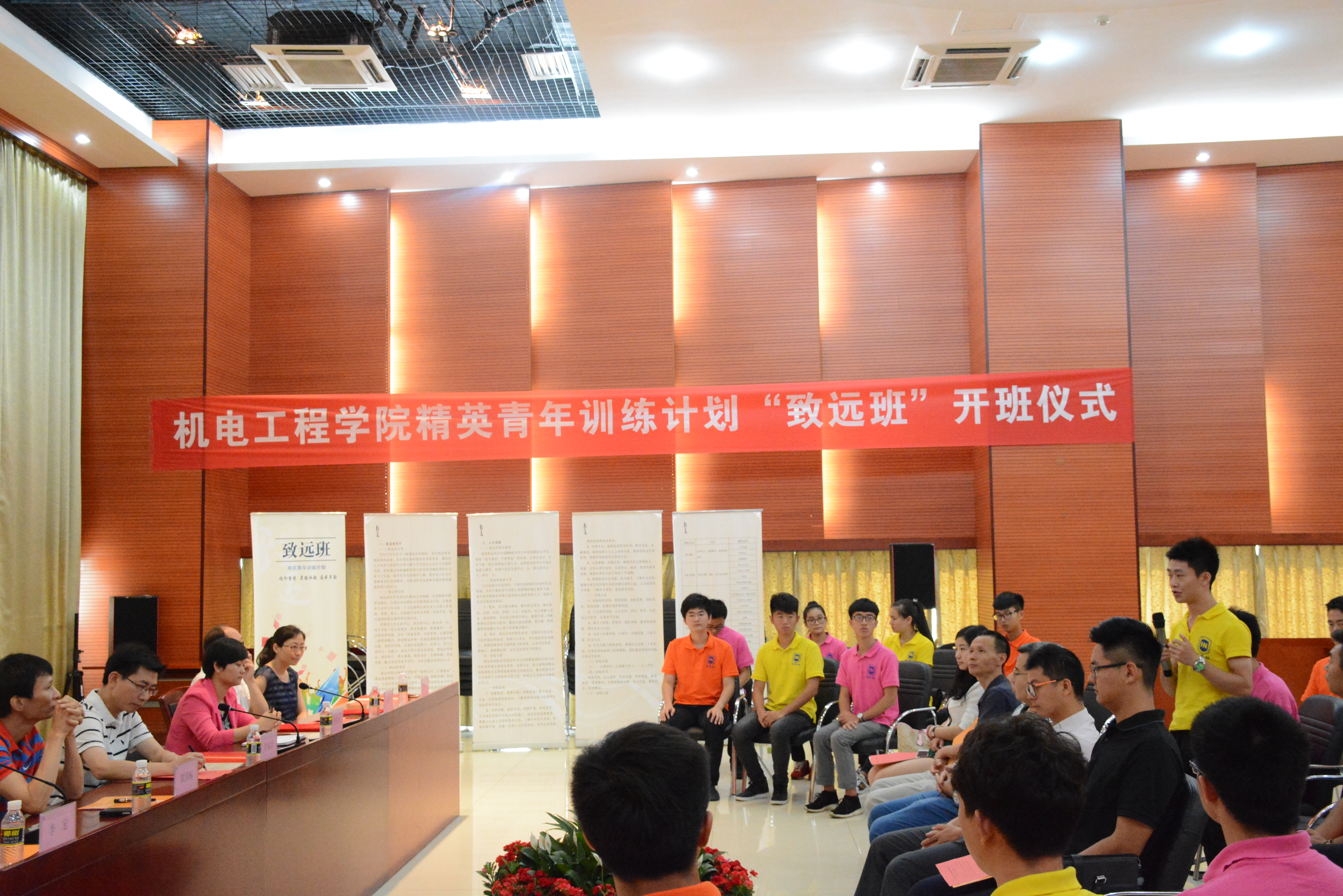 4月25日,必赢626net入口首页精英青年计划“致远班”开班仪式在我校思源学堂多功能厅顺利举行。必赢626net入口首页学工处符成彦处长、校团委林洪冰书记、组织部杨智平副部长受邀出席开班仪式,学院党委黄国标书记、李宏副书记、马庆芬副院长,电气系主任李有军副教授、汽车系主任李劲松副教授,学院学工办老师以及致远班全体同学参加本次开班仪式,仪式由“致远班”成员郭萌萌主持。