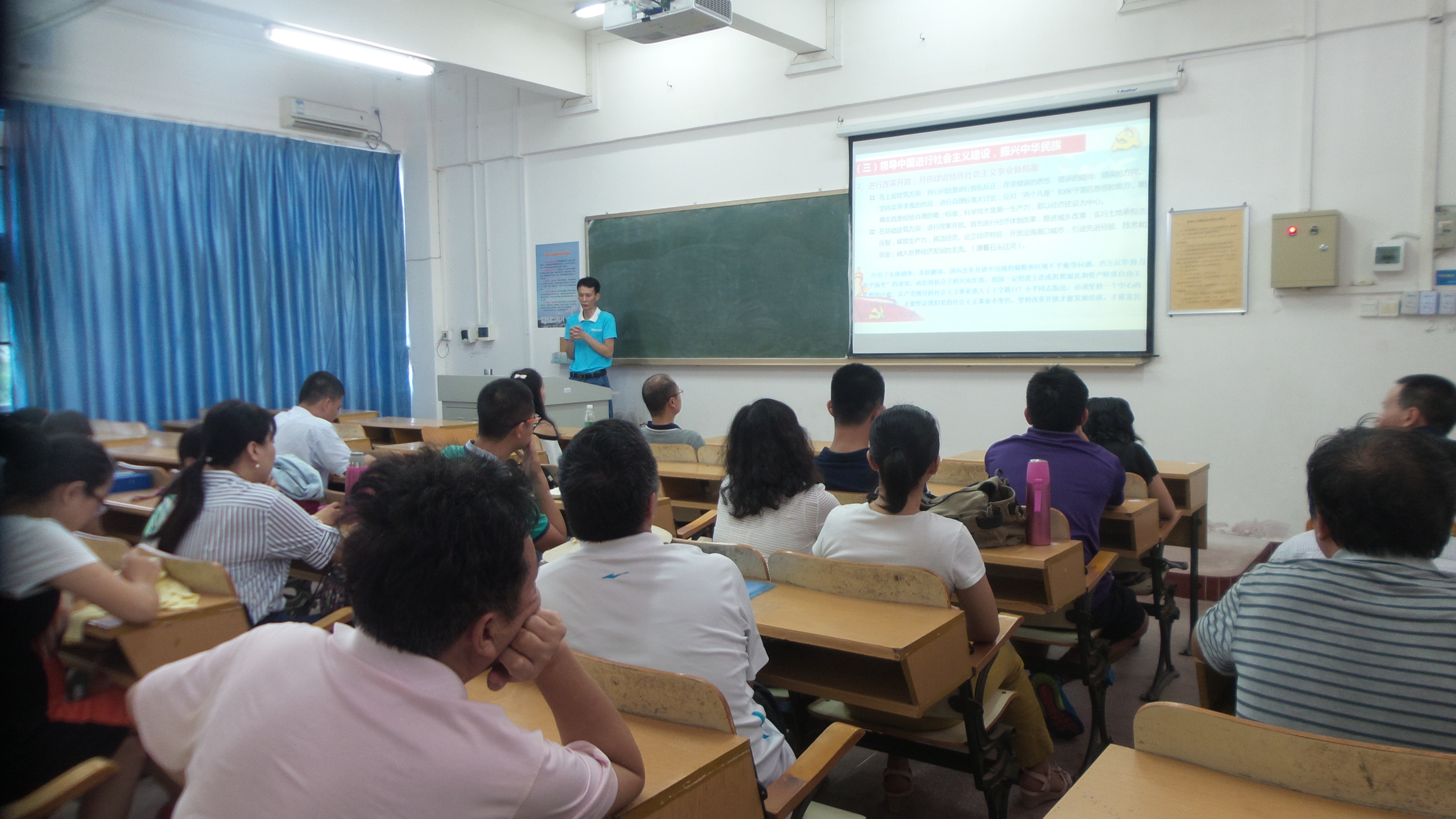 6月21日下午,学院党委黄国标书记为学院教工党员讲授“党的历史和理论指导”党课。学院全体教工党员参加了党课。