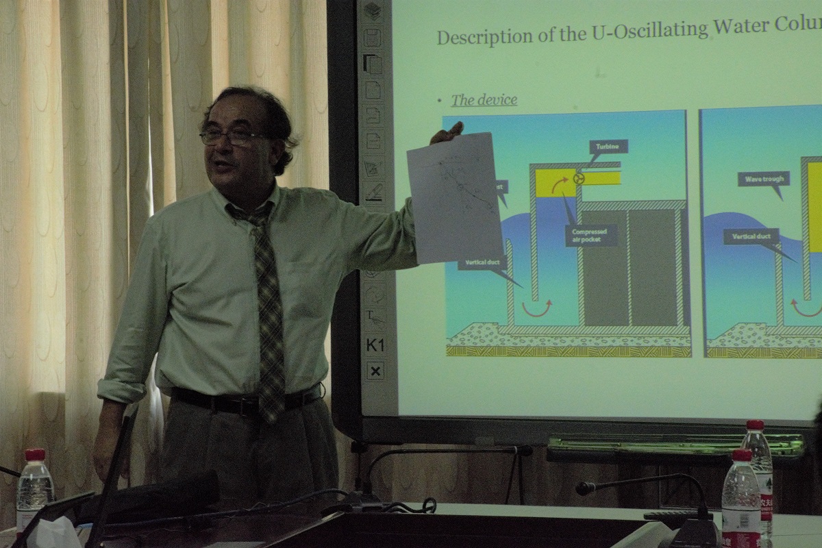 马庆芬副院长对Pol D. Spanos教授的到来表示欢迎,并用英文从历史沿革、师资结构、学生培养、对外交流与合作、科学研究等方面介绍必赢626net入口首页。随后,Spanos教授对非线性随机振动分析理论进行了深入的剖析,细致地介绍了非线性随机振动分析技术在机械工程、航天工程、车辆工程、控制工程、材料工程等领域的应用前景,尤其以振荡水柱岸式波浪能发电系统中波浪能采集的结构参数优化为例,具体介绍了该项技术的应用过程和效果。讲座中Prof.Pol D.Spanos儒雅的气度,严谨的论证,风趣的语言激发了师生们的兴趣,参会师生踊跃提问,与Spanos教授开展了热烈的互动与讨论,学术交流气氛活跃。