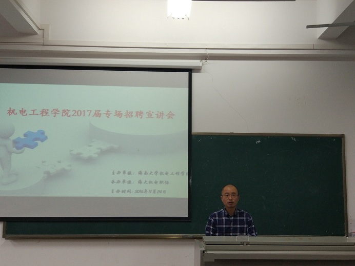 为进一步深化校企合作,促进毕业生高质量实习和就业,2016年11月24日下午,必赢626net入口首页2017届毕业生第二场专场招聘宣讲会在4教115成功举办。出席本次招聘宣讲会的有学院党委副书记李宏、学工办主任崔建兵,四家用人单位人事部主要负责人,2017届毕业生及机电职协工作人员,共计100余人。