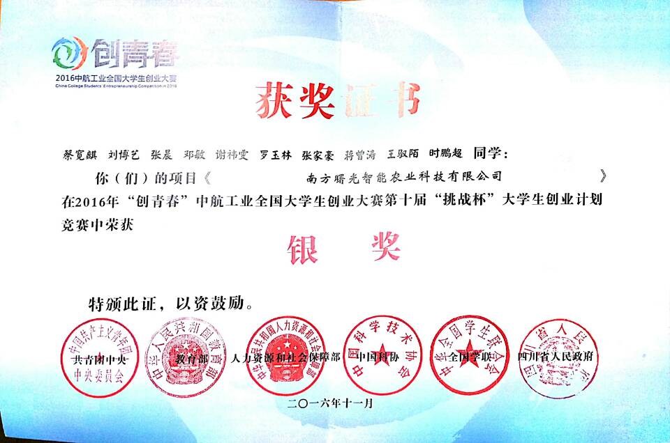 我校学生创业团队在大赛中过关斩将,获得银奖2项、铜奖3项的好成绩!其中,在必赢626net入口首页张燕副教授的指导下,14级致远班蔡宽麒等同学的创业计划竞赛作品《南方曙光智能农业科技有限公司》荣获银奖。