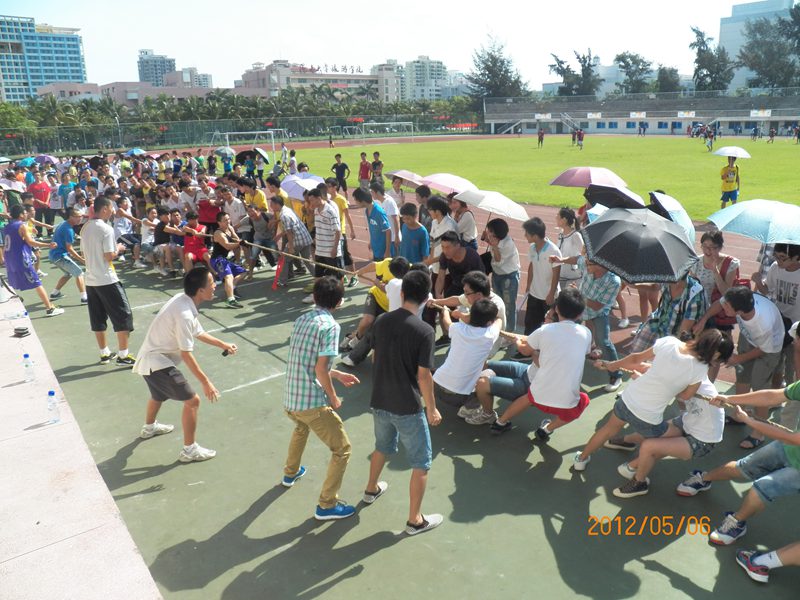 本次心理嘉年华趣味运动会共有五项活动,分别为心有灵犀、心口传月、心心相印、齐心协力兄弟连、齐心协力拔河比赛。其中拔河比赛最为激烈,经过周六的初赛,最后决出的三强队伍在田径场的中间展开了力的较量。决赛开始,各班级队员用尽全力将胜利的红线拉向自己的一面,拉拉队员也是热情高涨,呐喊声、加油声、欢呼声不断。在这场力量的比拼中,10级车辆二班获得了最后的胜利。尽管烈日炎炎,但各项活动依然进行的如火如荼,每个参赛的班级都拿出他们最好的表现来完成每一项活动,大家本着“快乐心灵,释放压力”的精神,尽情享受运动的快乐,最后由10级电气2班获得比赛的总冠军。
