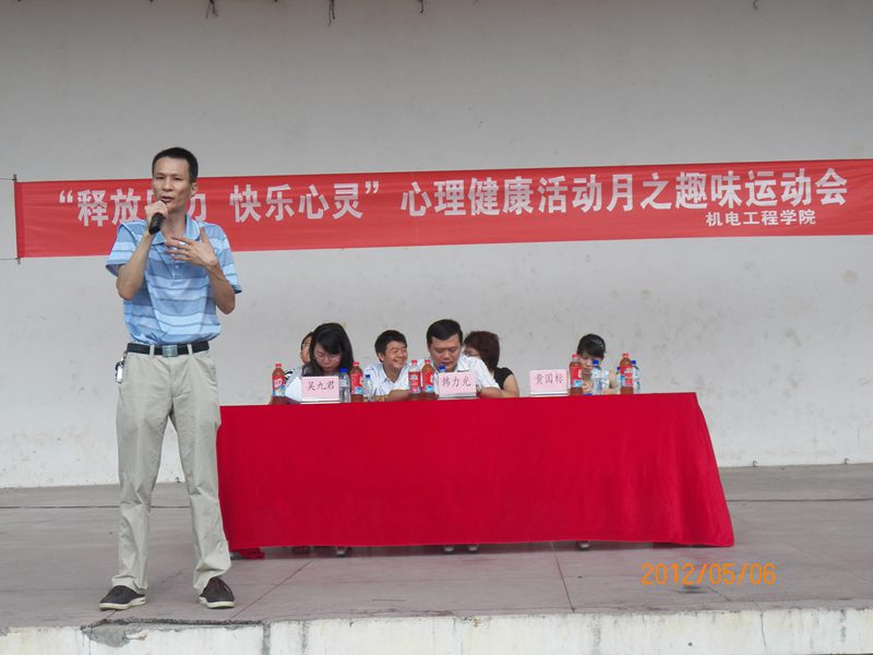 为了焕发同学们的运动激情,塑造一颗健康的心灵,构建一个和谐的校园。必赢626net入口首页在这个阳光灿烂的五月迎来了心理嘉年华趣味运动会暨心理健康活动月开幕式。出席本次心理嘉年华趣味运动会的嘉宾有:学生处韩力光副处长,学生处心理健康教育指导中心吴九君博士,院党委黄国标副书记,学工办主任陈秀妍老师,何映敏、崔建兵、姚广龙老师以及必赢626net入口首页2010级和2011级全体学生。