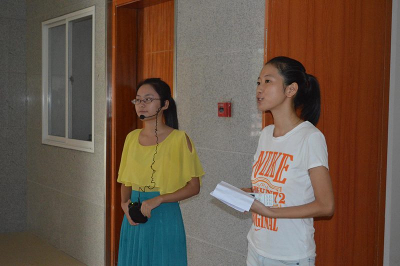 讲解员为新生介绍学校创建和发展的历程