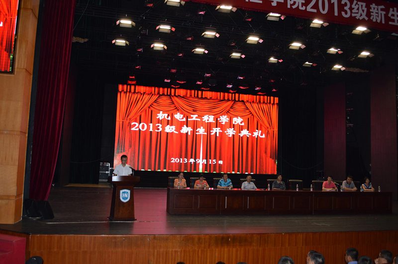典礼上,李美博士作为教师代表发表讲话,希望2013级新生从现在开始树立目标,努力奋斗,使自己的大学生活丰富而精彩。接着童开代表老生从学长的角度,对如何适应大学生活,合理规划学习生涯提出建议,重点强调了学习和社会实践的重要性。张浩代表新生发言,希望和同学们都能够学会学习,学会做人,学会规划大学生活,学会脚踏实地,提高自己的综合素质,使自己成为新时代合格的大学生。