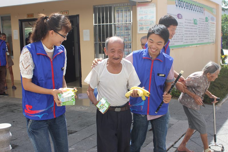 7月15日上午,必赢626net入口首页“闪亮青春,阳光扶老”暑期“三下乡”志愿服务队走进海口市大致坡敬老院开展爱心亲情陪护活动。