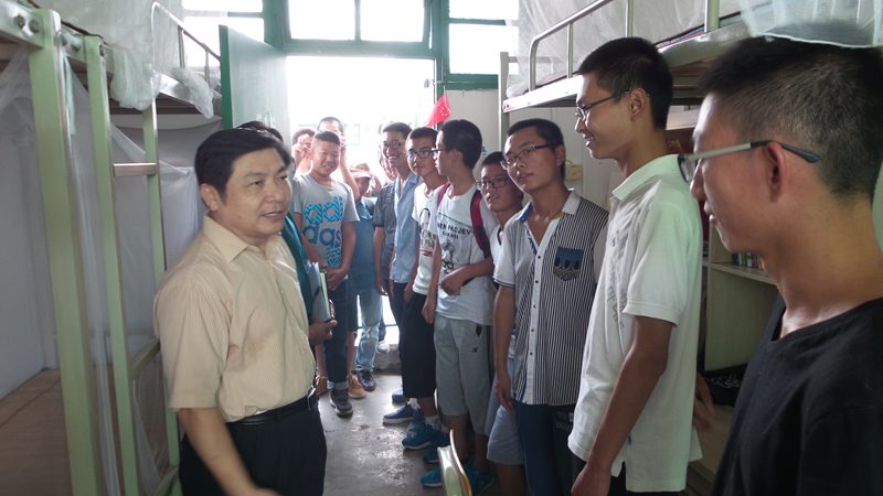 新学期伊始,为了解我院学生的住宿条件和生活状况,给同学们创造一个良好的校园生活环境,为提高学生的社会竞争力奠定一个良好的生活基础。10月15日下午,我校何忠平副校长在后勤管理处邢谷川处长、学院党委黄国标副书记及校办、学院学工办教师们的陪同下专程来到六栋男生宿舍看望学生们。