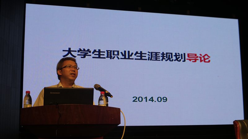 伴随着全场师生热烈的掌声,讲座正式开始。讲座中,邱老师以亲切的口吻表达了自己与同学们就生活以及学习等各方面问题进行探讨与交流的意愿。接着,围绕“大学生职业生涯规划”主题从基本认知、探讨缘由、基本理论、基本过程以及基本方法五个方面进行了全面细致的阐述。他说,大学生应针对自身特点在社会中找到属于自己的正确位置,避免盲目跟风、模糊定位,并就此问题给予多条建议。最后他通过数据展示分析了当前的就业形势,强调提高自身内在素质的必要性。针对就业过程中的常见问题以及误区,他借多项典型事例一一进行了细致的解答。