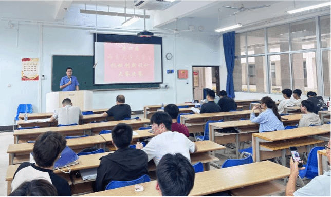 本次决赛设置“高性能仿生蝴蝶”“特定水产品初加工机械”“叶菜洁净化处理包装一体化机械”三大赛道,覆盖仿生机械、农产品加工机械等多个领域,贴合海南热带农业、海洋产业发展需求。比赛现场,各参赛队伍依次上台,通过PPT演示、实物介绍、现场答辩等形式,全面展示作品的设计理念、结构原理与应用价值,充分展现了海大学子的创新智慧与动手能力。